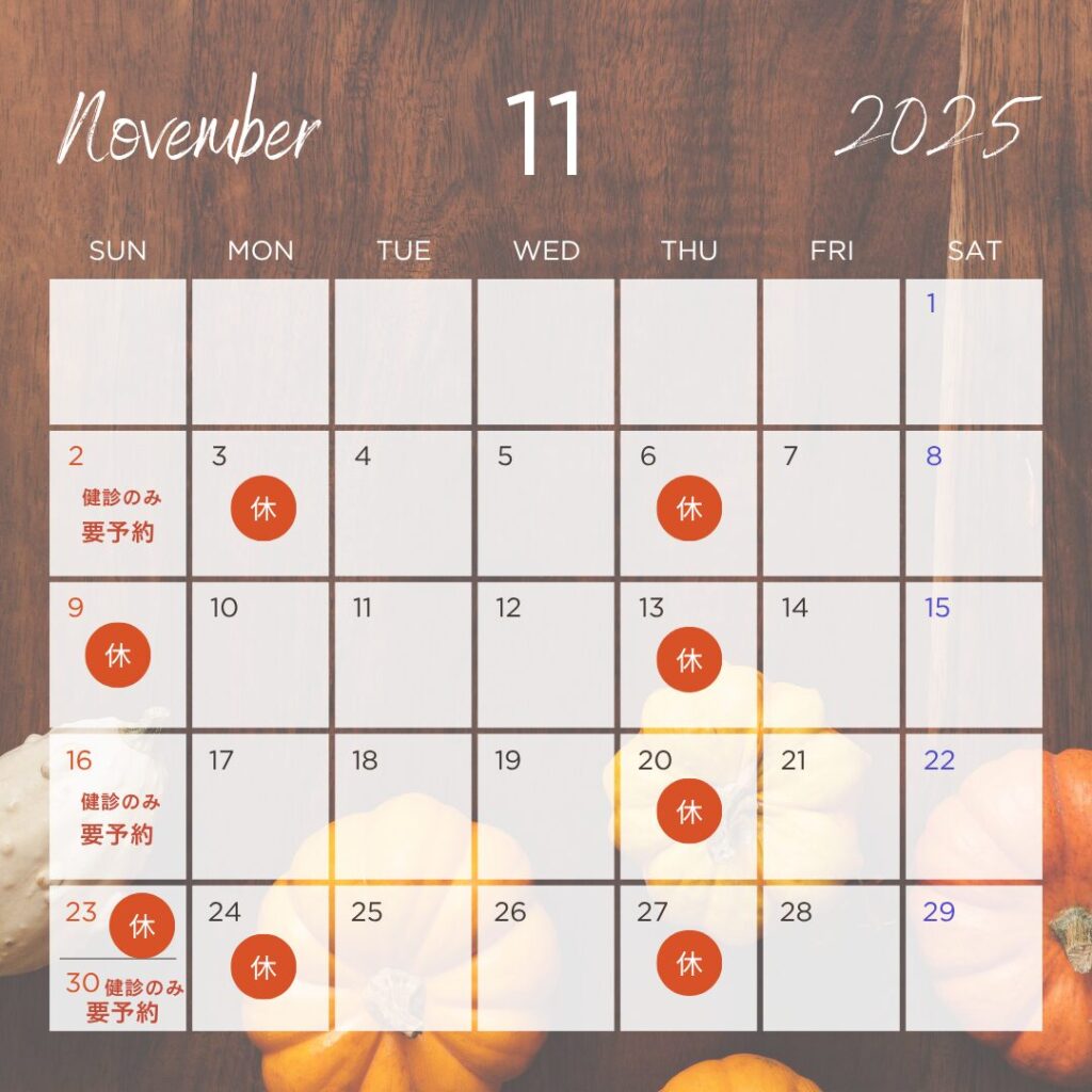11月診療日カレンダー|甲子園の歯医者 甲子園駅前ながた歯科・矯正歯科