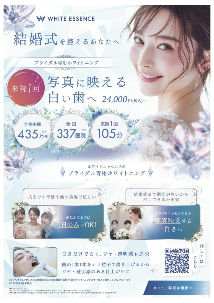 ホワイトエッセンスのブライダル専用メニューなら、忙しい準備期間でも無理なく理想の口元を叶えられます。