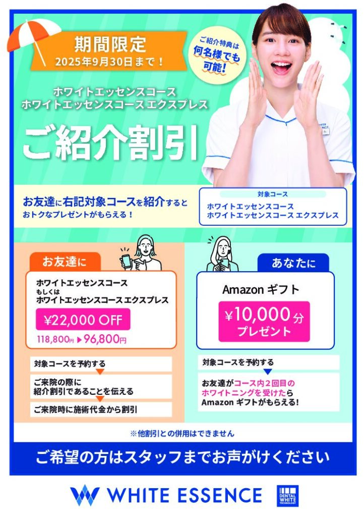 ホワイトエッセンスコースかホワイトエッセンスコースエクスプレスを受けられた方にとってもお得なご紹介割引のご案内です!