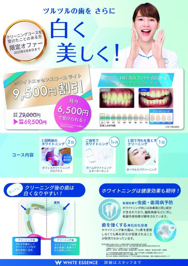 9月ホワイトエッセンスクリーニングキャンペーン|甲子園の歯医者 甲子園駅前ながた歯科・矯正歯科